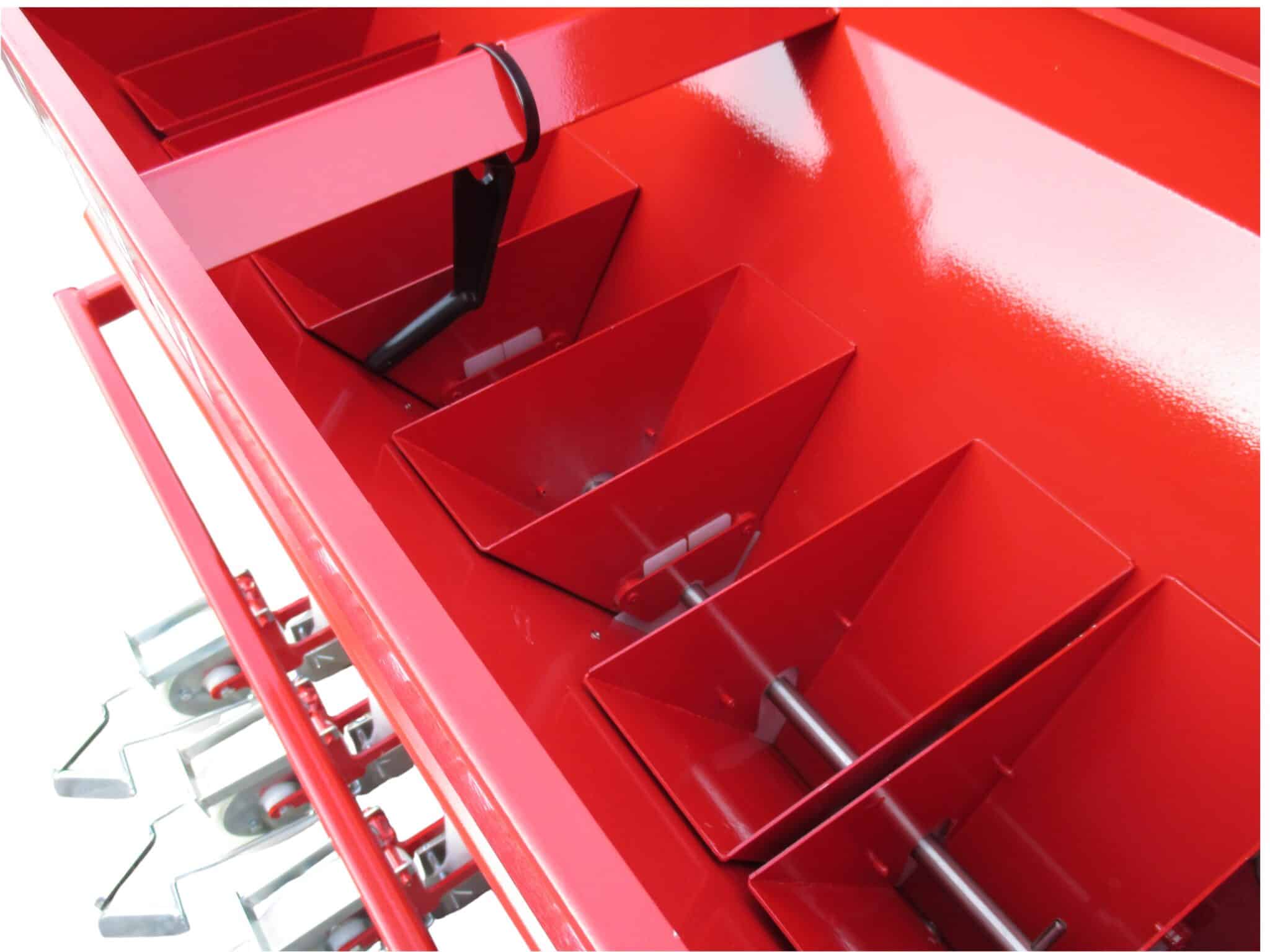 Såmængden kan justeres via gearkassen med 160 gearindstillinger, hvilket giver mulighed for finjustering af frømængden baseret på specifikke krav til de enkelte frøtyper.