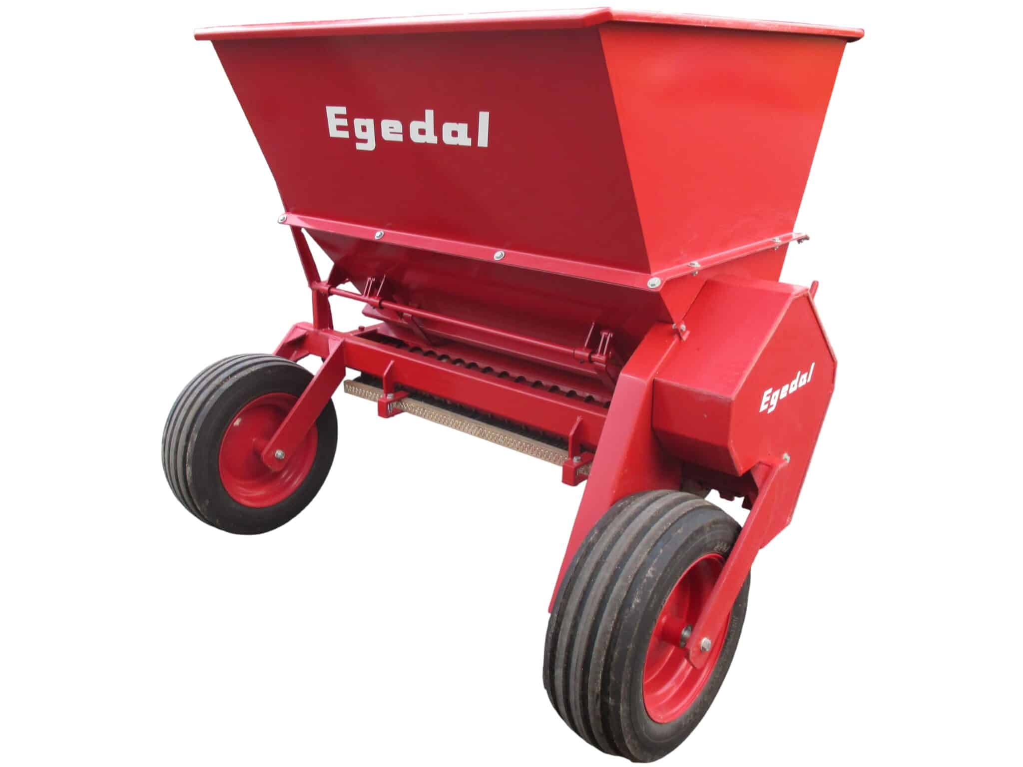 Med Egedal Sandstrømaskine kan du være sikker på en ensartet og jævn fordeling af sandet på dine frøbede takket være dens konstruktion med omrørere og en spiralformet tromle.